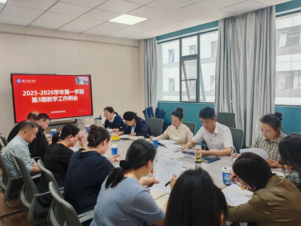 校领导表示,学校两校区将迎来共21300余名学生的教学运行工作,要统筹规划好两校区教育教学工作,持续保障教学运行平稳有序。同时对近期教学重点工作进行着重强调:一是国庆期间,学院要动态关注学生动向,确保学生安全。二是扎实做好新生课堂的巡-查-听课工作,注重教风学风建设。三是严格规范教师教学档案归档。四是科学谋划,精心培育教研教改成果,稳步提高我校产学合作协同育人项目质量,不断深化教学改革。
