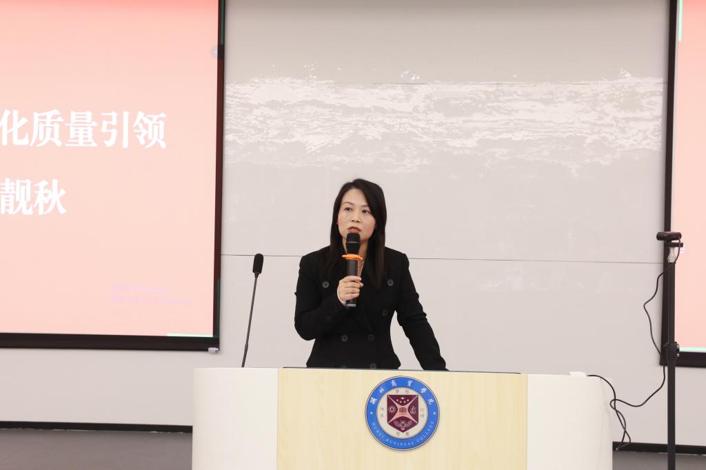 陈靓秋以“深耕内涵建设,强化质量引领”为主题作报告。她对学校在专业建设、课程建设、学科竞赛等领域所取得的阶段性成果予以肯定,深入剖析了当前制约学校发展的深层次因素,并提出后续应聚焦考公考研率以及大学英语四六级通过率的提升,达成四大学科竞赛国奖的突破等核心指标,从而推动学校人才培养水平迈上新的台阶。