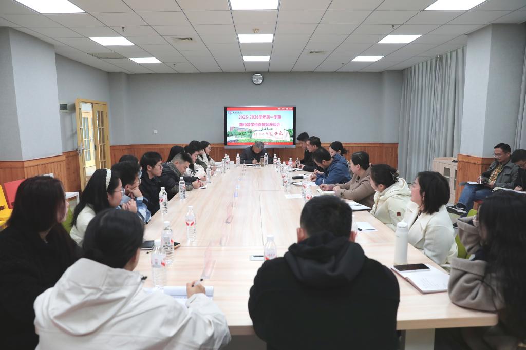 11月19日下午,学校2025-2026学年第一学期期中教学检查师生代表座谈会在咸宁校区办公楼1202会议室召开。副校长肖坤、胡柳、陈靓秋,校长助理彭莉出席会议。教务处、教学质量管理处、学工处、资产与后勤管理处相关负责人及各二级学院师生代表、相关负责人参加会议。会议由副校长陈靓秋主持。